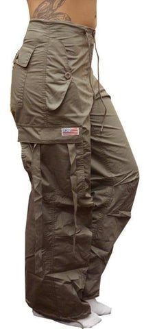 They're here! UFO Clothing has a new line of cool cargo pants called "Girly Cuts". They have a cleaner cut around the waist and hips. Drawstring waist and leg openings to assure a perfect fit every time. Two Cargo Pockets w/ Straps and velcro closures, Two pockets on each side and one on the back! You're going to love them! The world Famous UFO Pants are made of 65% polyester, 35% cotton and are fully machine washable.