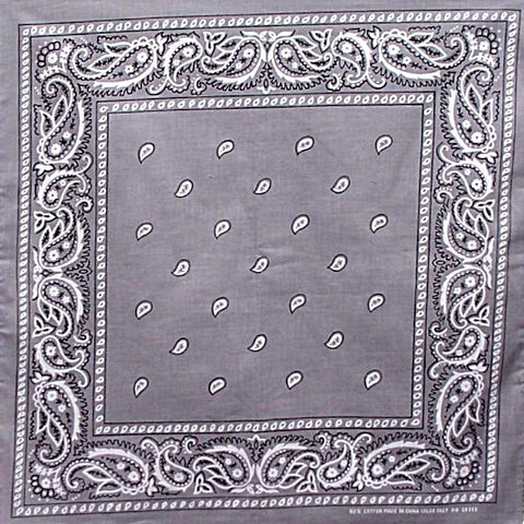 Bandanas - Gray Camoflauge Bandana. Bandanas are a very unique and versitile accessorie that can be worn as a wrap or head band, can be tied around your wrist as an accent peice or can be used on your dining room table as stylish dinner napkins. There are millions of uses for a bandanna, whether you are wearing it as an accent to your outfit or tying it around your dogs collar to give rover a cute touch you are sure to find tons of great ways to use your bandana. Here at bewild.com we offer a huge selection of premium quality bandanas is dozens of colors, styles, paterns and designs. Each 100% cotton bandana measures 22" x 22", the perfect size to tie around your head. Perfect for bad hair days!