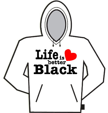 Life Is Better Black, You will be able to picture yourself walking anywhere in this White Hooded 50/50 Sweatshirt. Designed for warmth and durability the 7.5 ounce, 50/50 blend fleece fabric with double-ply hood provides protection from a blinding snow storm at the North Pole or from blowing sand in the Mojave Desert. This hooded sweat is versitility plus. The convenient pouch pocket keeps hands warm or holds a water bottle. The matching drawstring and metal grommets on the hood make sure it stays where it belongs. The set-in sleeves, ribbed cuffs and banded bottom all keep this shirt together in a way that makes durability its middle name.