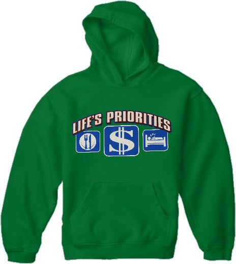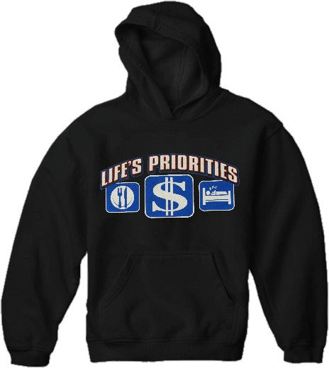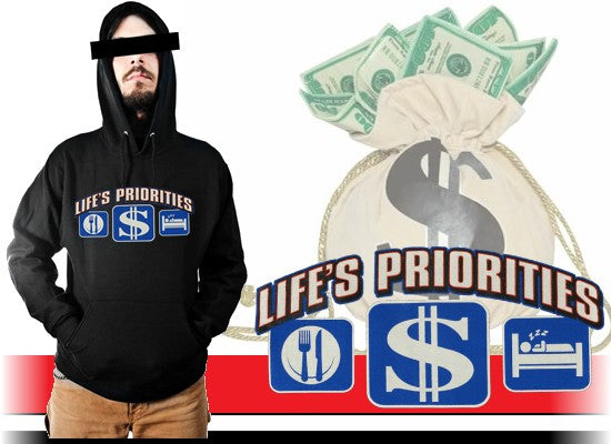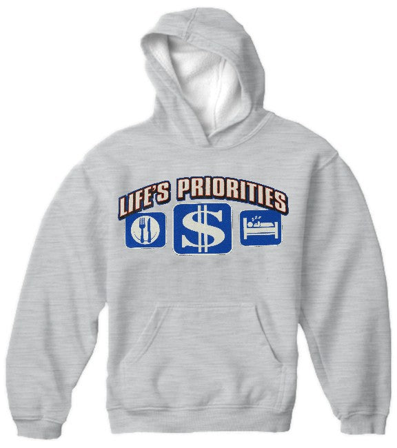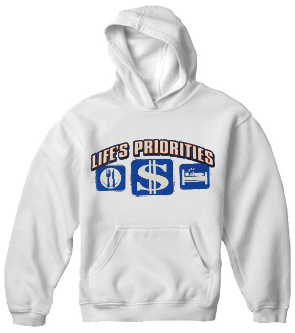 Life's Priorities - Eat, Sleep & Make Money Girls Hoodie. Life is full of important things so it's important to have your priorities straight. We think this shirt kind of narrows it down! Get your hustle on and bring home the big bucks!