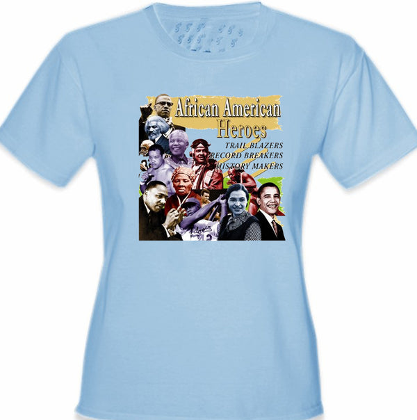 Junior Fitted African American Heroes and Record Makers Girl's shirts are a S-32" at bust and 29" at waist, M-34" at bust and 30" at waist , L36" at bust...