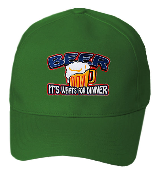 Beer It's What's For Dinner Baseball Hat now available. Get Beer It's What's For Dinner Baseball Hat featuring 100% cotton 5 panel construction, a pre-curved bill, triple stitched sweatband and...