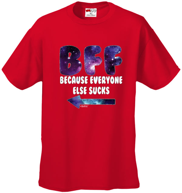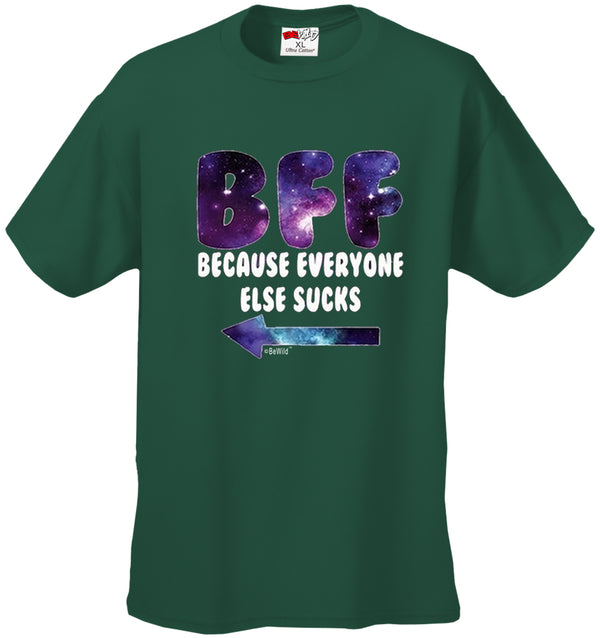 Arrow Left BFF Everyone Else Sucks Mens T-shirts have a classic, comfortable fit. Shirts are pre-shrunk, so you can expect little to no shrinkage.Key Features Preshrunk 100% cotton jersey 6-oz....