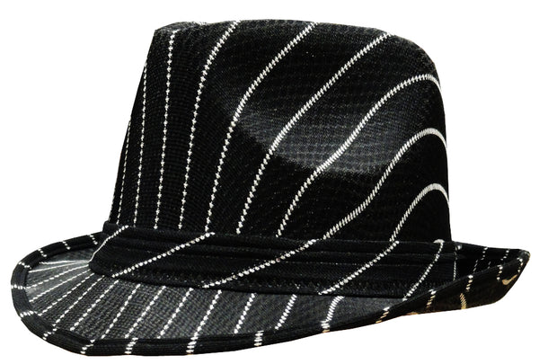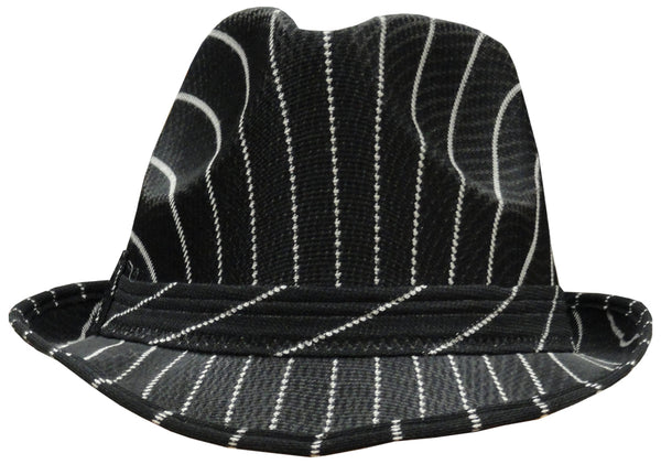 Black Pin-Striped Fedora Hat.The fedora hat is creased lengthwise down the crown and pinched in the front on both sides. Similar hats with a C-crown (with an indentation for the...