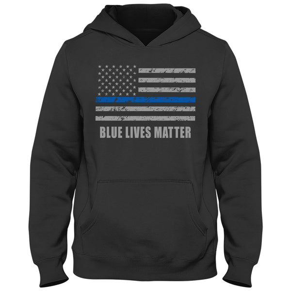 Blue Lives Matter Blue Line Flag Adult Hoodie