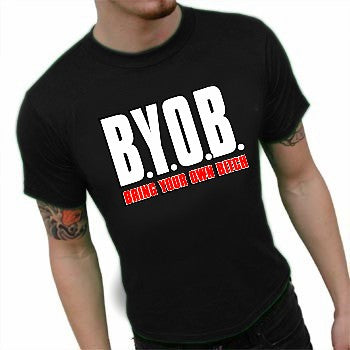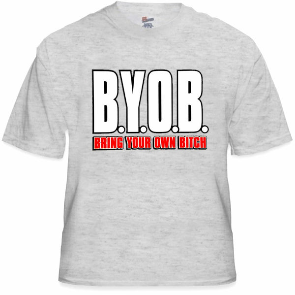 BYOB Bring Your Own Bitch T-Shirt. BYOB... Bring your own beer? NO. Bring Your Own Bitch!!! This shirt says it all and is a must have for all party animals....