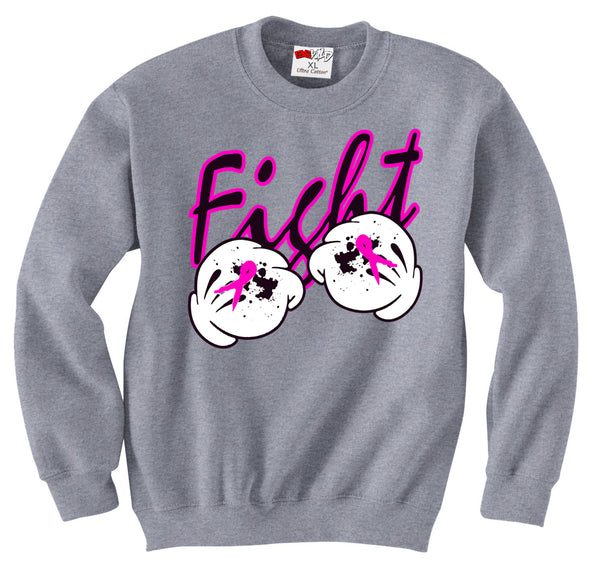 Cartoon Hands Fight Breast Cancer Adult Crewneck