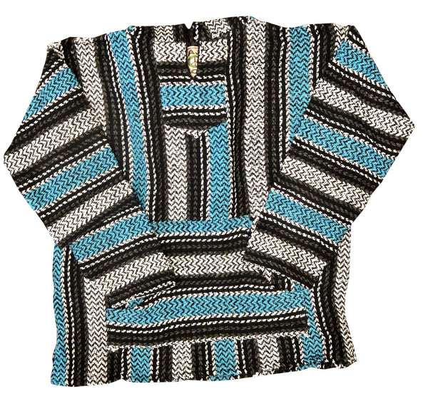 Deluxe Baja - Original Mexican Baja Hoodie (Black / Aqua). Direct From the Surf Ripped Beaches of Baja comes this authentic "Baja" Hoodie. Each Baja Jacket is made of 100%...