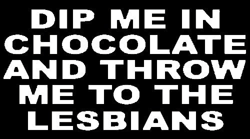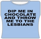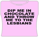 Dip Me In Chocolate And Throw Me To The Lesbians Girls T-Shirt. Exclusively from Bewild.com, these new tee’s feature No fancy graphics, no silly pictures or extra words. Just hard-core...