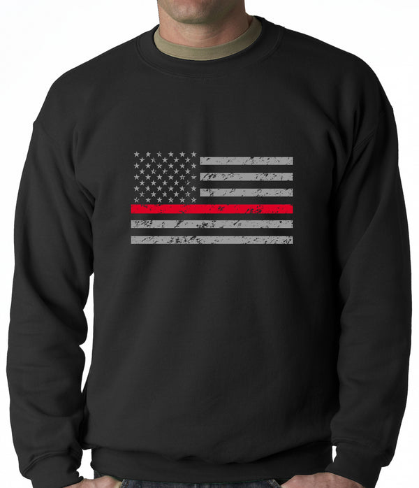 Firefighter Thin Red Line American Flag - Support Firefighter Department Horizontal Adult Crewneck