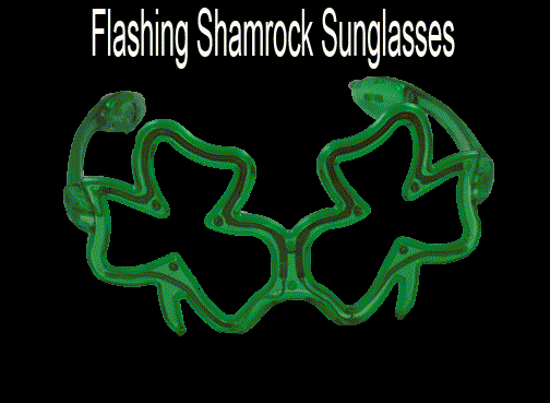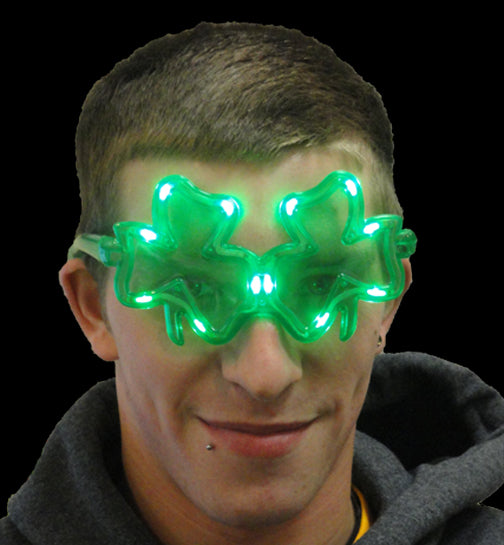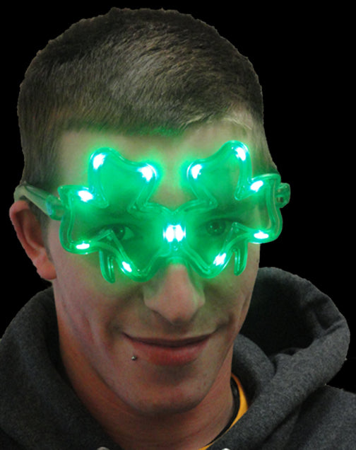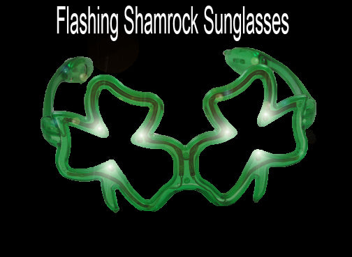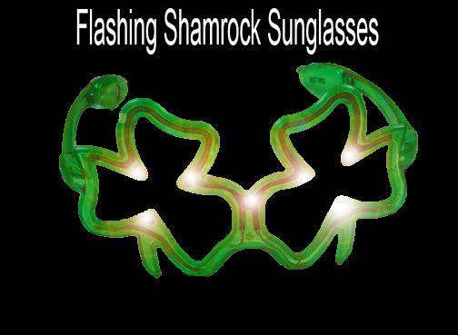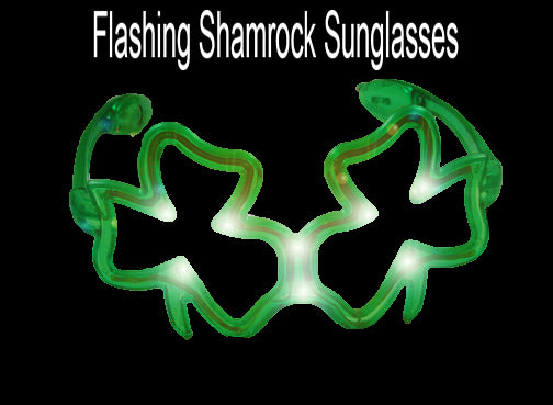 Flashing Shamrock Sunglasses- Wear these bright flashing sunglasses to a party and get everybody's attention in seconds! With 3 different flashing modes that will turn heads immediately.