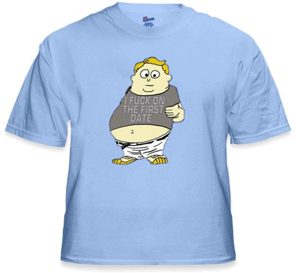 Funny & Hillarious Tees "I Fcuk On The First Date Fat Kid" T-Shirt. Of course this fat little bastard Fuc*s on the first date, he would do any breathing being...