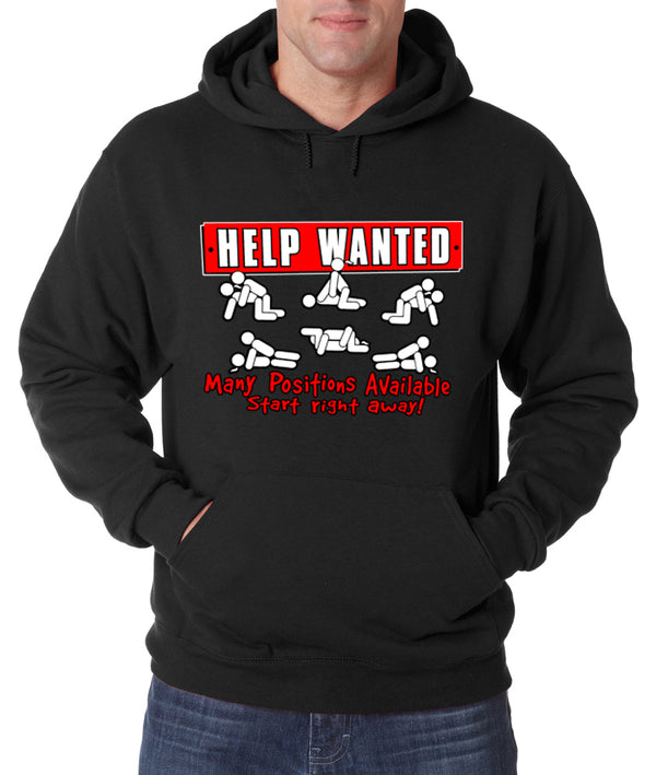 Help Wanted Many Positions Available Adult Hoodie. Help Wanted, Many Positions Available, Start Right Away, You will be able to picture yourself walking anywhere in this Black Hooded 50/50 Sweatshirt....