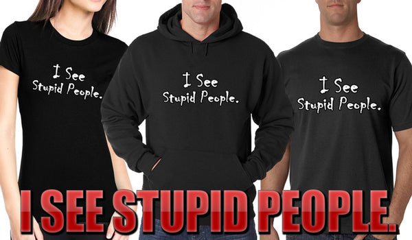 I See Stupid People Adult Hoodie. You will be able to picture yourself walking anywhere in this Black Hooded 50/50 Sweatshirt. Designed for warmth and durability the 7.5 ounce, 50/50...