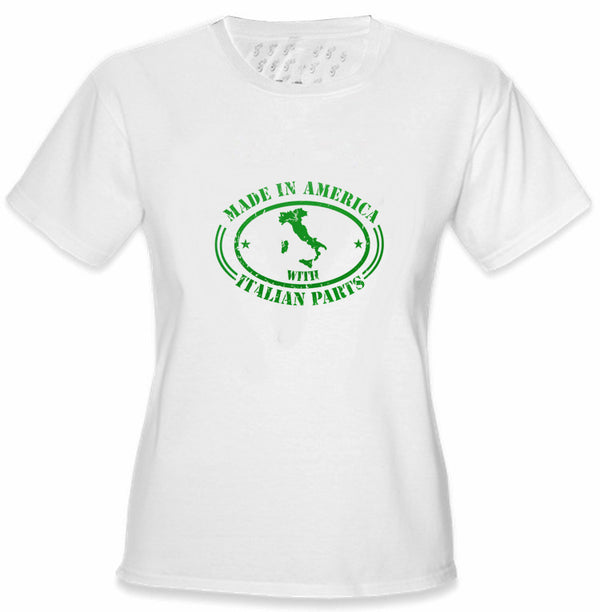 Italian Made In America With Italian Parts Ladies T-Shirt.Womens and Girls Funny and Hillarious Tees at Bewild.com feature a full selection of funny T-Shirts, Rude Tees, Attitude Shirts, TShirts to...