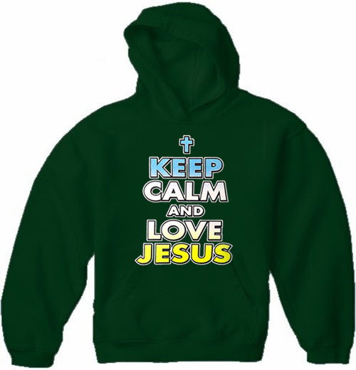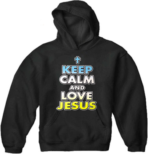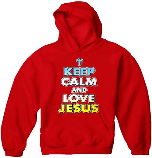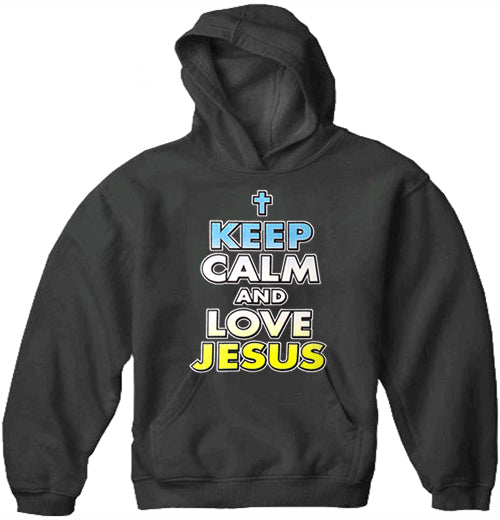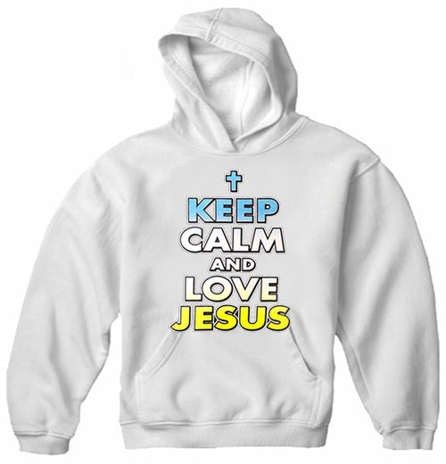 Keep Calm And Love Jesus Adult Hoodie. A sporty hooded pullover that will always look smooth, thanks to our pill-resistant fleece.Key Features All colors now available S-4XL Preshrunk 50% cotton/50%...