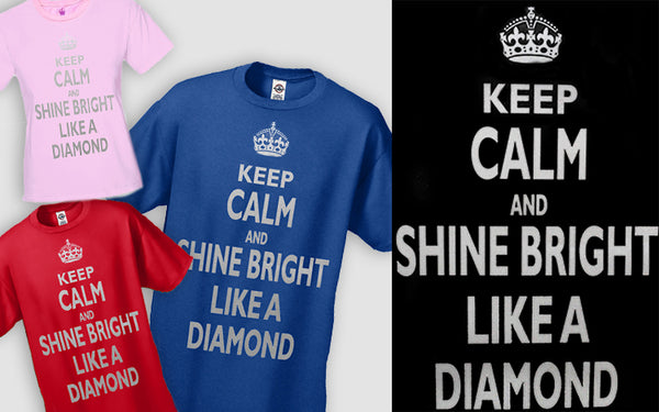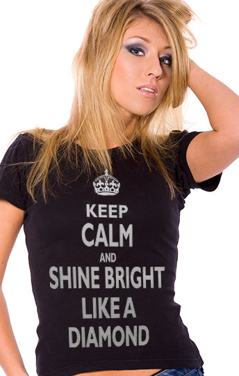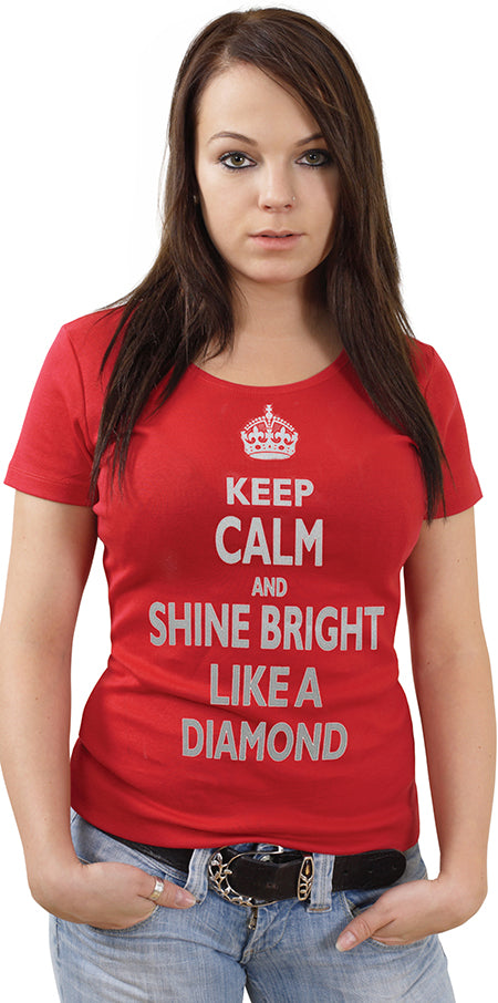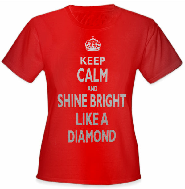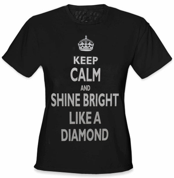 Keep Calm And Shine bright Like A Diamond Girl's T-Shirt. Junior Fitted Keep Calm shirts are a S-32" at bust and 29" at waist, M-34" at bust and 30" at...
