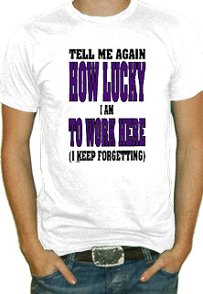 Lucky To Work Here T-Shirt. Exclusively from Bewild.com, these new tee’s feature hard-core sayings that say it all. From “Trust Me I'm A Doctor” to “Thats Mr. Asshole To You”....