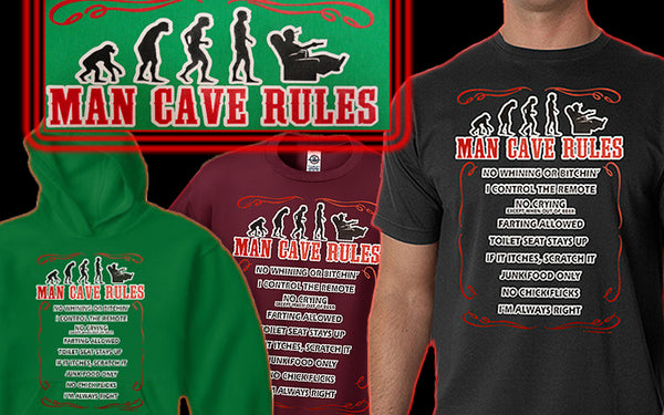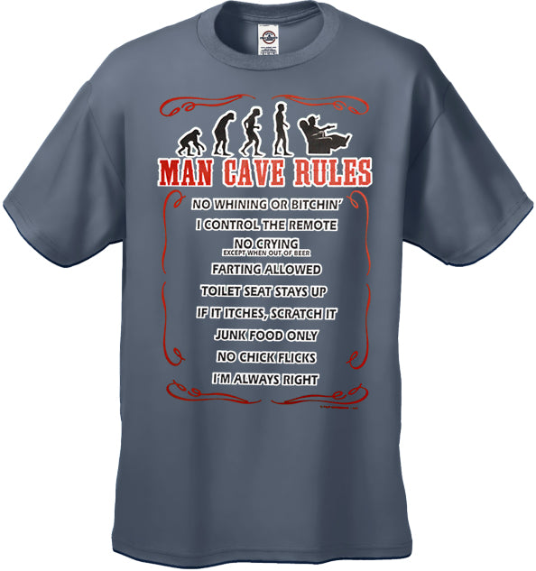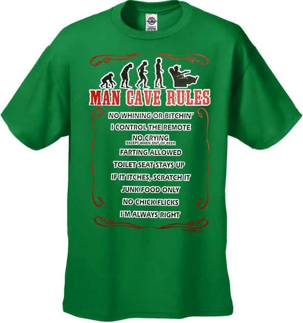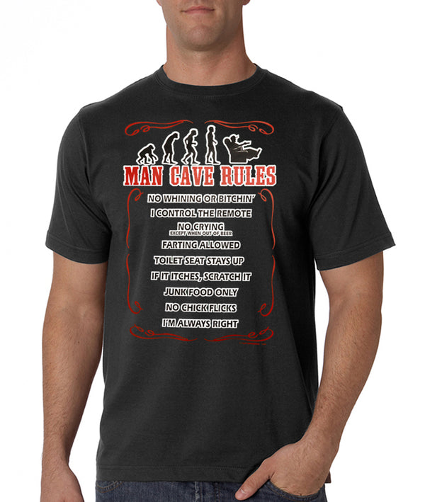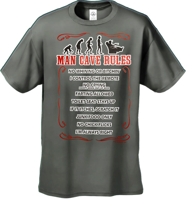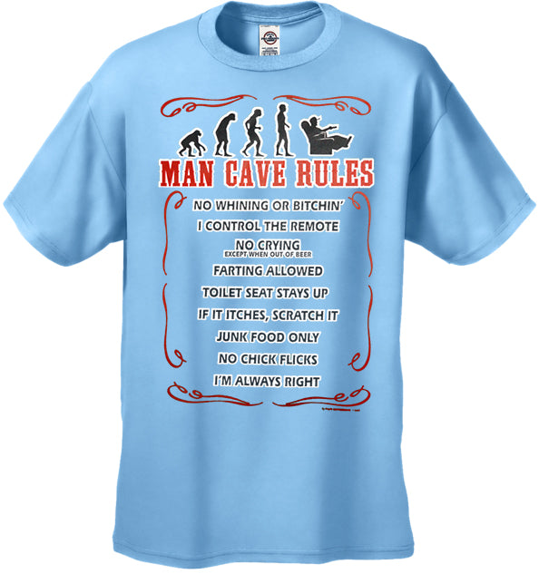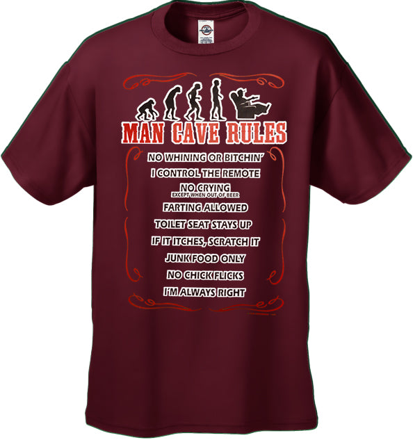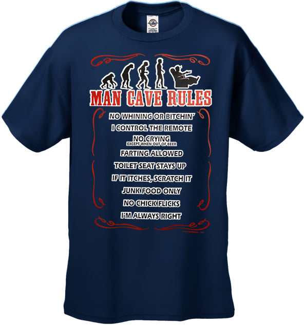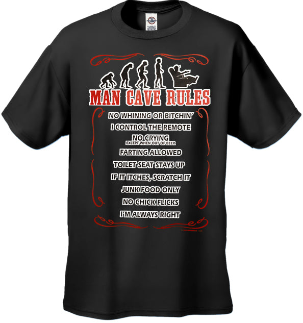 This classic 100% Cotton style Man Cave Rules Men's T-Shirt is a great choice for anyone. This shirt has been screen printed with a list of rules for the Man...