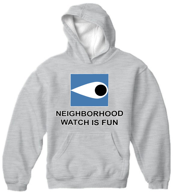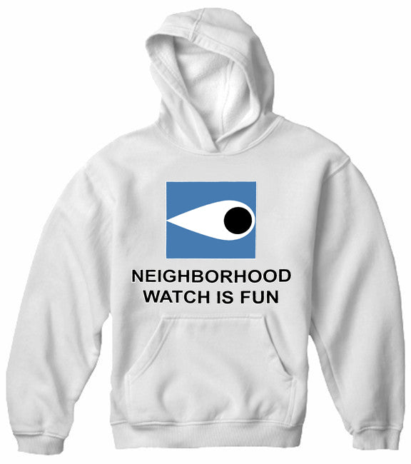 Neighborhood Watch Is Fun, You will be able to picture yourself walking anywhere in this White Hooded 50/50 Sweatshirt. Designed for warmth and durability the 7.5 ounce, 50/50 blend fleece...