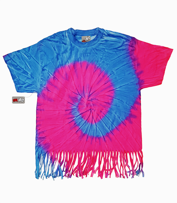 Neon Pink And Blue Tie Dye Fringe Kids T-shirt