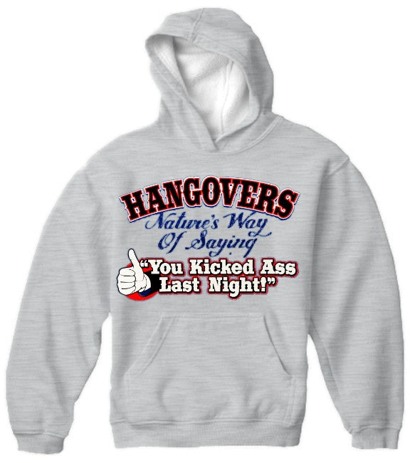 Novelty Drinking Sweatshirts- Hangovers - You Kicked Ass Last Night Hoodie. A Design that says it all- Yea you know what we are talking about! You kicked ass last night...