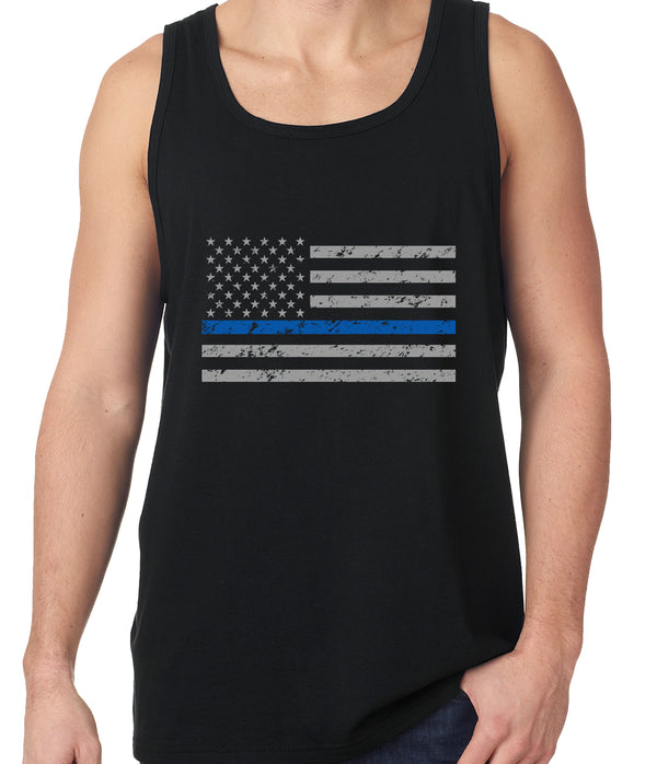 Police Thin Blue Line American Flag - Support Police Department Horizontal Tanktop