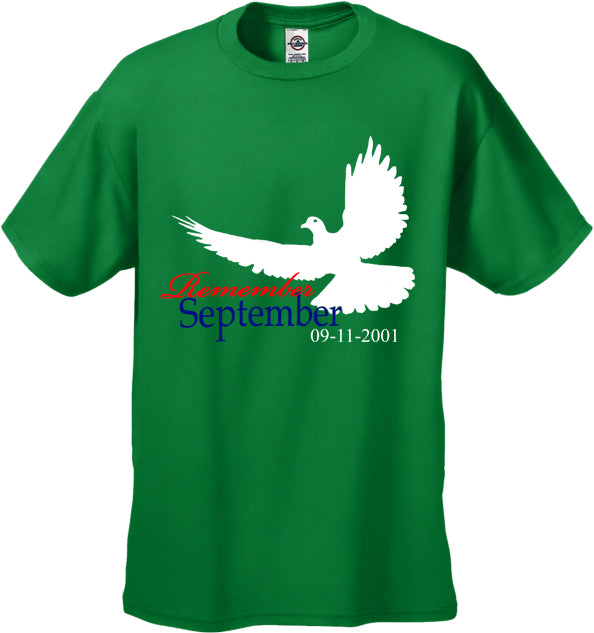 Remember September 9/11 Men's T-Shirt.Show your support for the US with this Remember September 9/11 t-shirt! Featuring a beautiful bird and it says "Remember September" in red and navy blue....