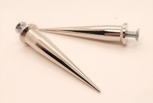A pair of durable stainless steel slender spikes. Perfect for any jacket, shoe, hat, glove, t-shirt & more! Use them as singular decorative pieces OR combine them to make intimidatingly awesome...