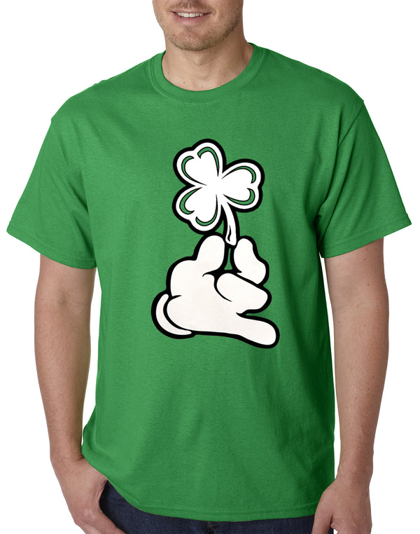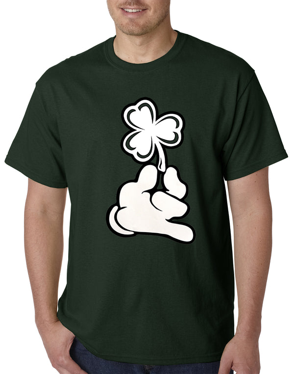 St. Patrick's Day Cartoon Hand Holding Shamrock Mens T-shirt
