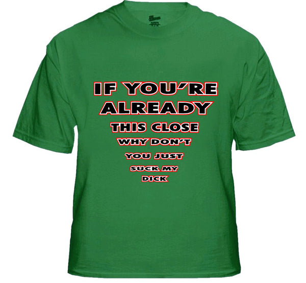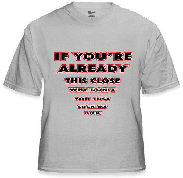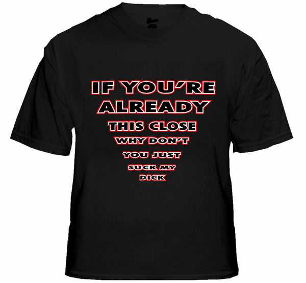 Suck My Dick Eyesight T-Shirt. This is indeed a very funny tee, perfect for bars and parties! This shirt reads "If your already this close why don't you just suck...
