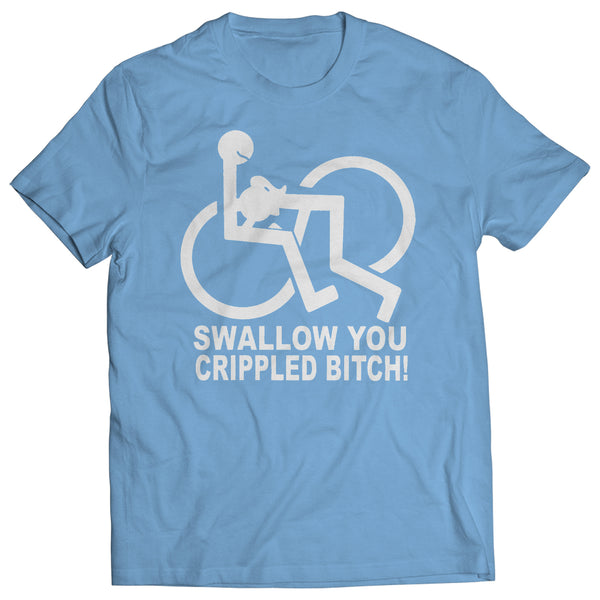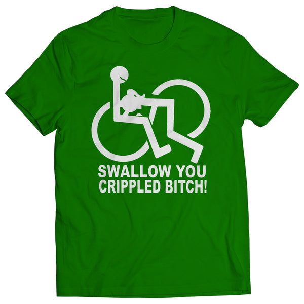 Swallow You Crippled Bitch T-Shirt. Exclusively from Bewild.com. These new tee shirts feature hard-core sayings that say it all. From Lick Here For Full View to Skanky white-trailer trash. How...